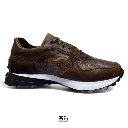 sneaker de piel venado / piel avestruz cafe tabaco 20k extralight