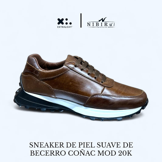 sneaker de piel suave de becerro color coñac / acabado pull piel / mod 20k