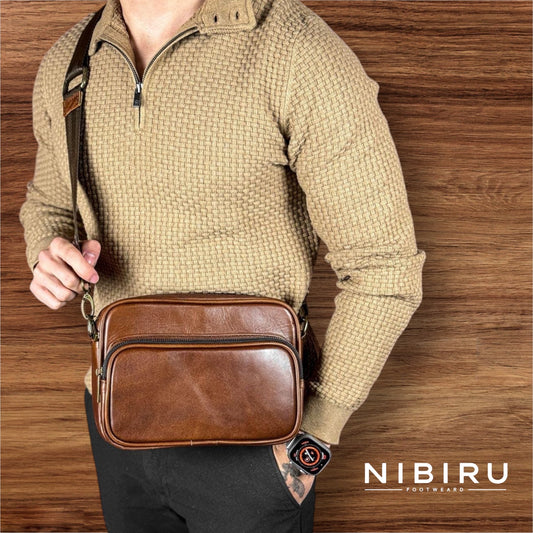 bandolera de piel cuero coñac mod saint santos practica y elegante