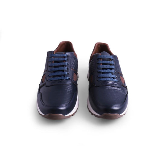 sneaker de piel de venado azul marino / piel exotica cocodrilo cherry mod 20k suela extralight