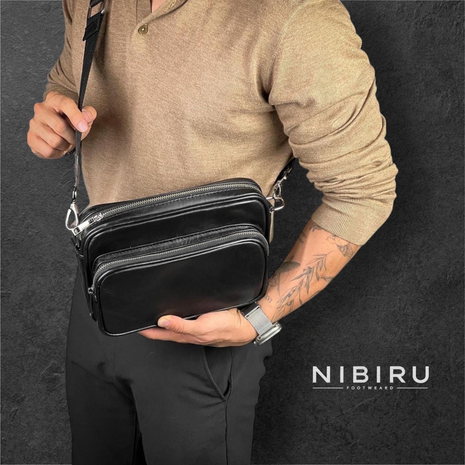 bandolera de piel cuero negro black mod monaco elegante y practica