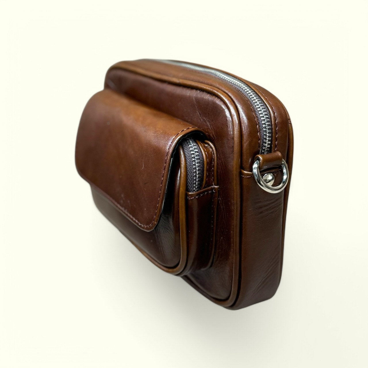 bandolera de piel cuero coñac mod saint santos practica y elegante