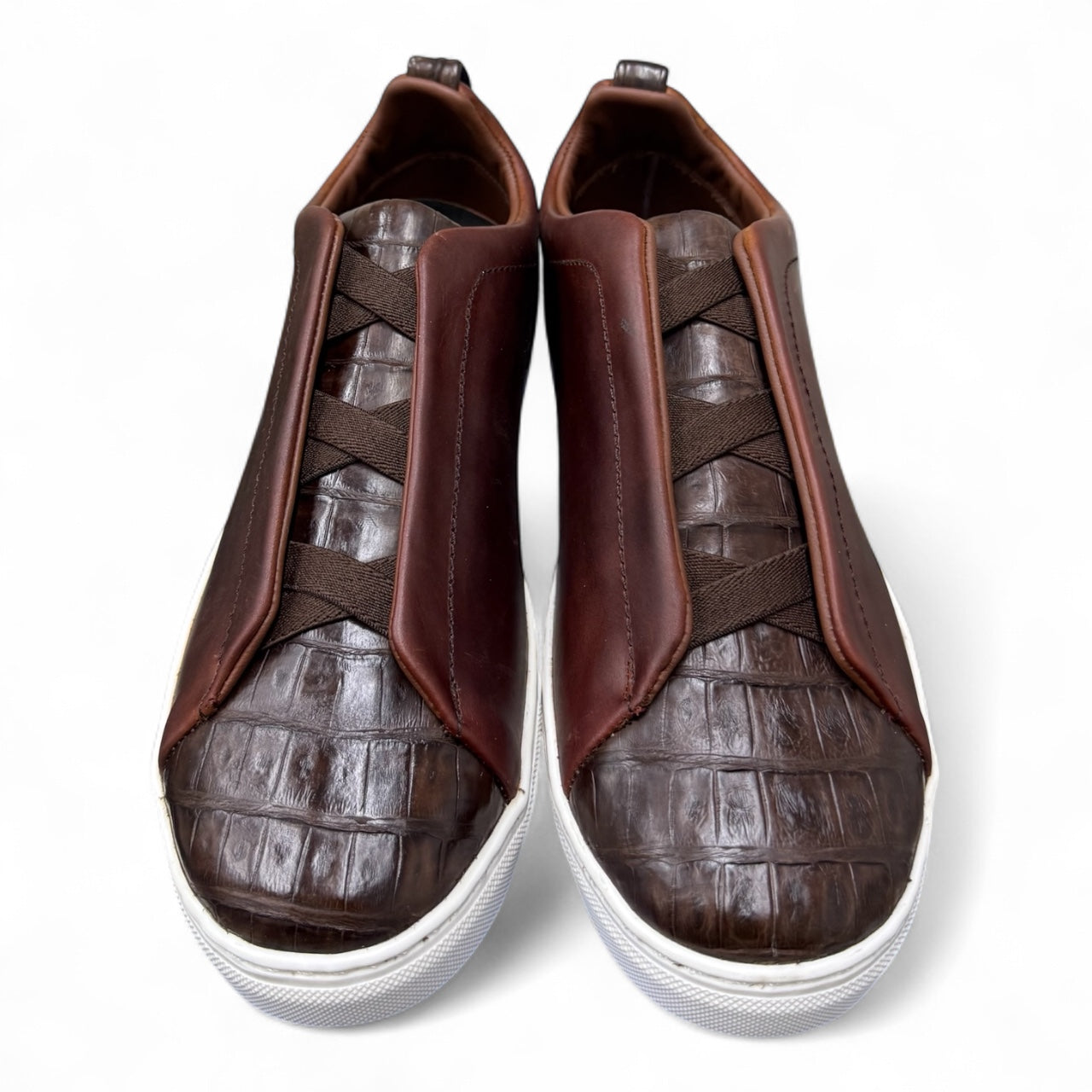 "Estos zapatos de cocodrilo de la marca Sneaker Maison son un lujo para tus pies. Hechos con piel genuina y un elegante color cognac, son perfectos para cualquier ocasión. Su diseño único y su título legítimo los hacen imprescindibles para cualquier amante de la moda."