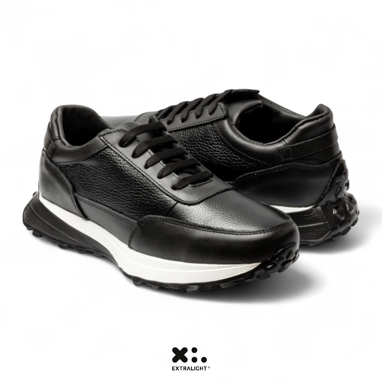 Disfruta de la comodidad y el estilo con nuestros Sneakers de piel de venado negro extralight. El modelo James te hará destacar con su diseño único y ligero. ¡Consigue ya el tuyo y camina con estilo y confort en cada paso!